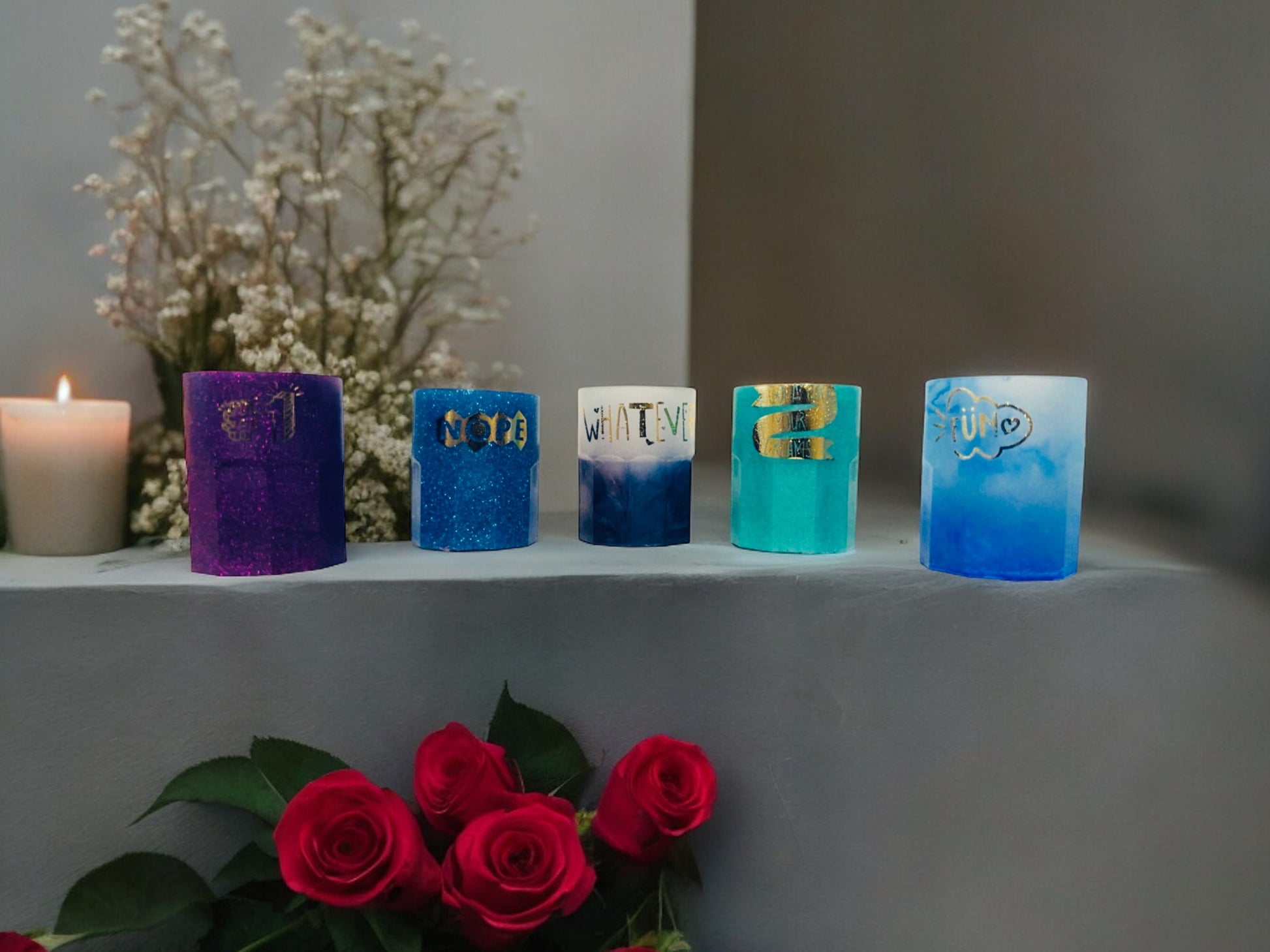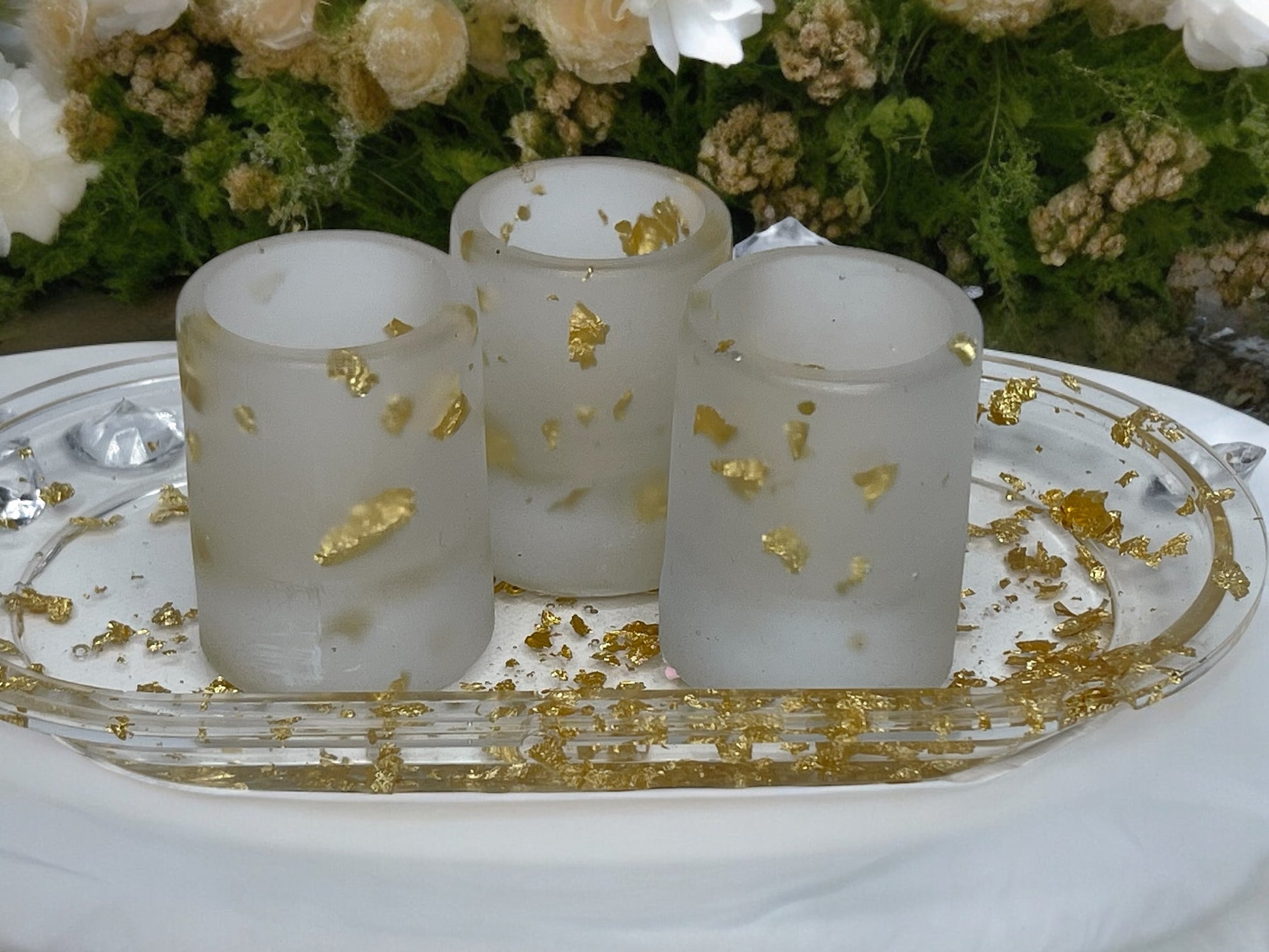 Set your party off, with this cool fully customizable resin shot glasses. The possibilities are endless. Just dream it up and specify what colors or flakes you want in the personalize space provided below. We have gold and silver flakes available. Set comes with 4 20z resin made shot glasses.