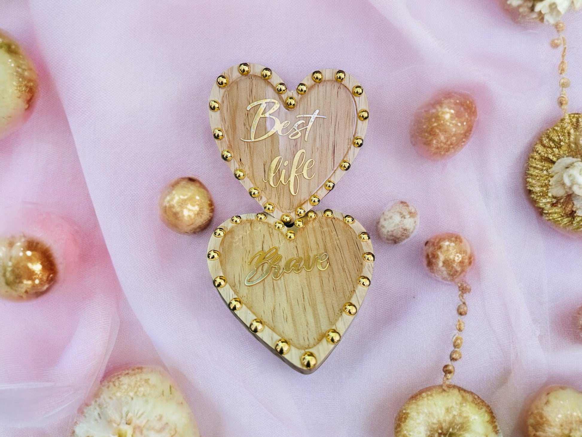 CUSTOM HEART SHAPE WOOD AND RESIN COASTERS