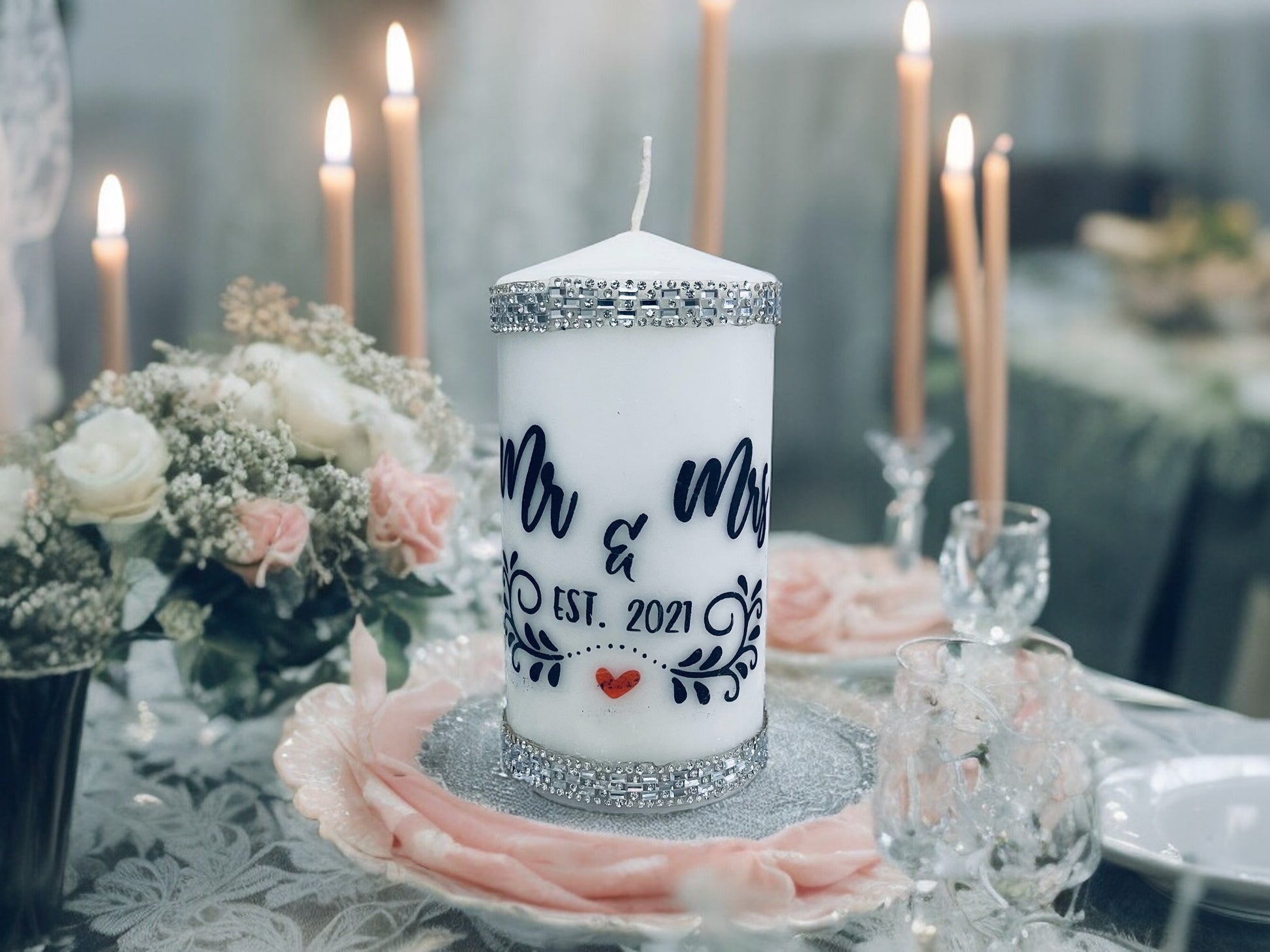CUSTOM MR. AND MRS. DECRETIVE CANDLE SET