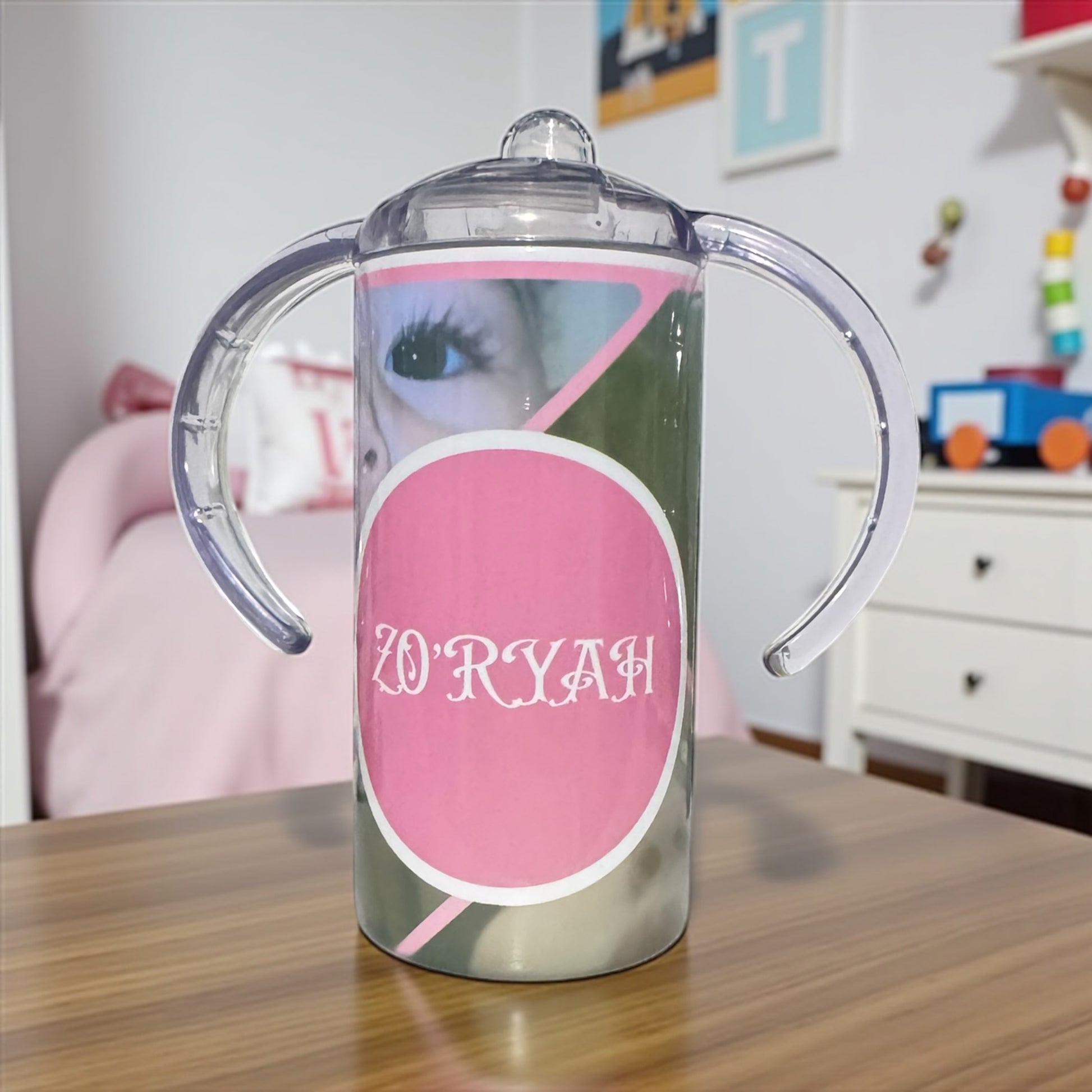 Let your child keep their drink hot or cold in style, with this insulated fully customizable sippy cup. Use as many images as you like to customize your cup. Please also indicate if you want a specific color for the writing in the space provided below.