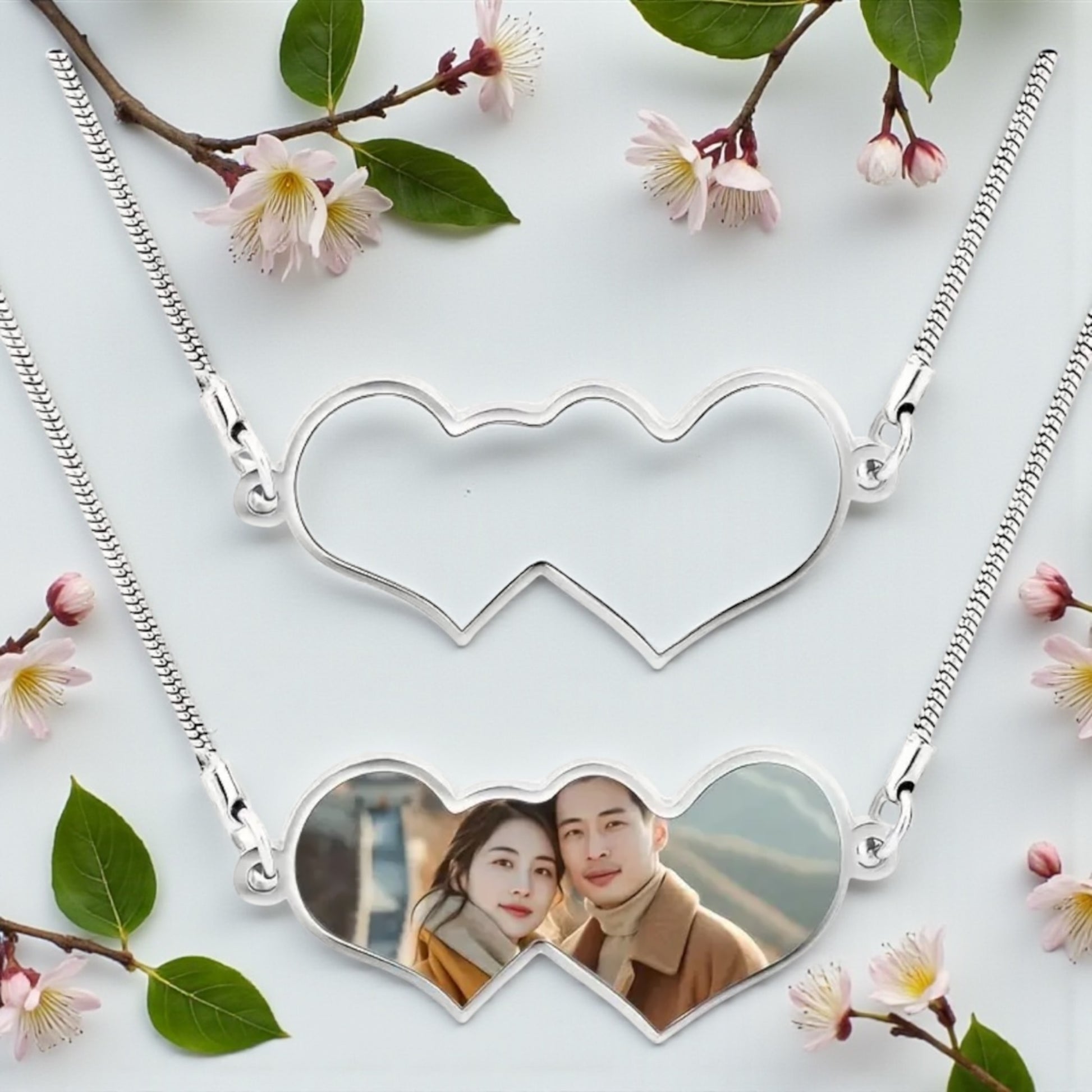 Look at this beautiful heart shaped silver picture jewelry set. Set includes necklace and bracelet. Customize this set with your favorite photo. Just submit your images below.