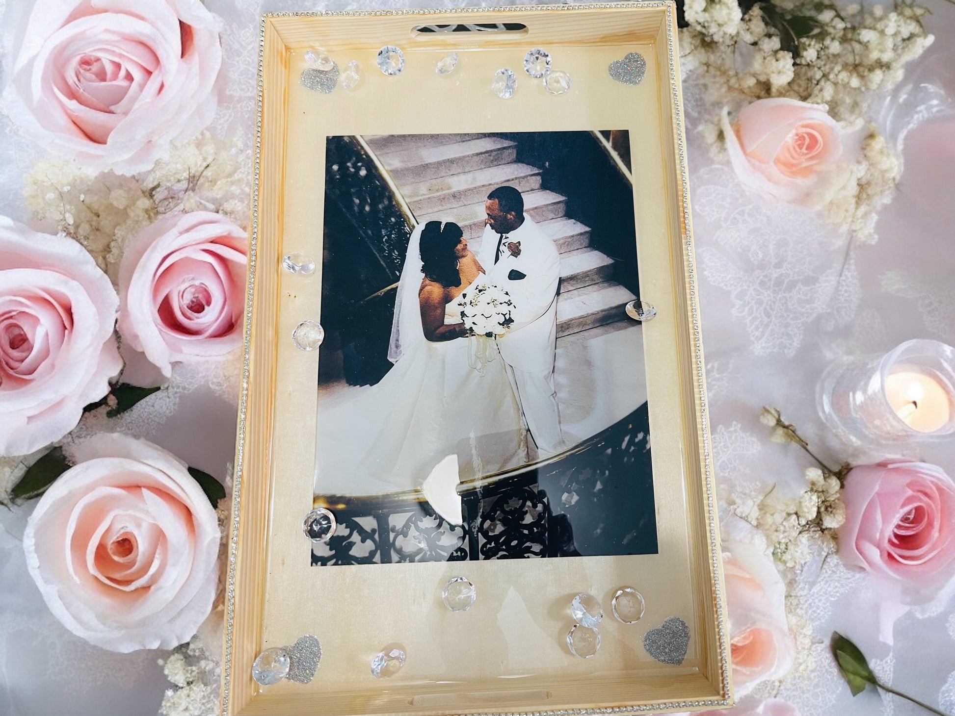 CUSTOM PICTURE WOOD RESIN COVERED SERVING TRAY