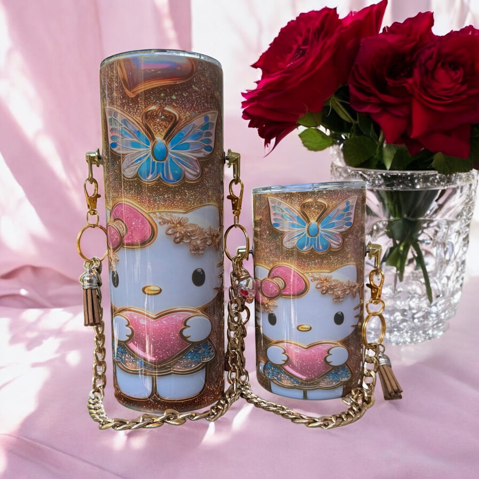 GOLDEN KITTY MOMMY AND ME CUSTOM PURSE TUMBLER SET