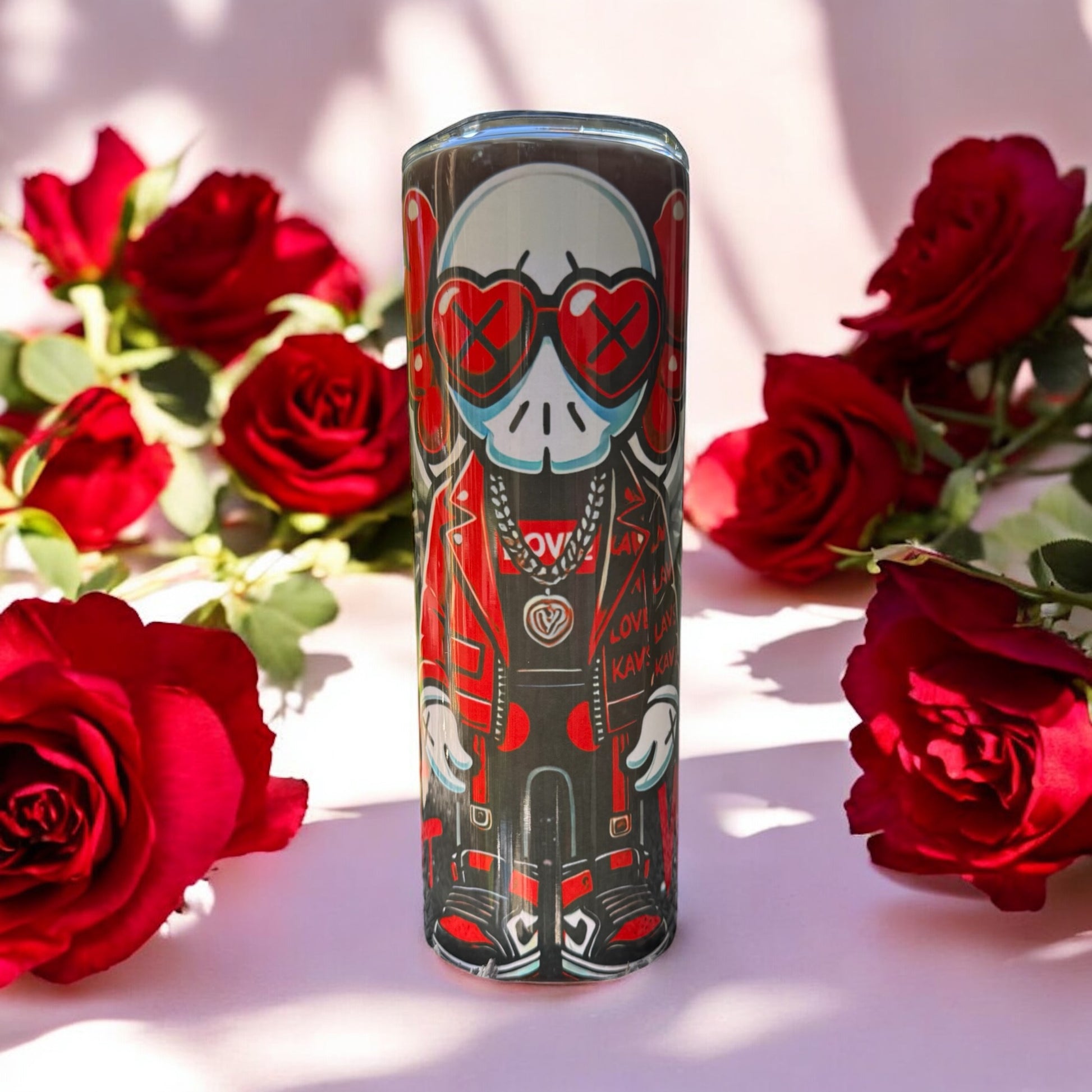 Keep your drink hot or cold in style with this custom 20oz insulated tumbler. Feel free to personalize it with your name or favorite saying. Background can come in black, red or white. Dazzle a bit more when you choose the glow in the dark option of blue or green. Glow in the dark has a matt finish.