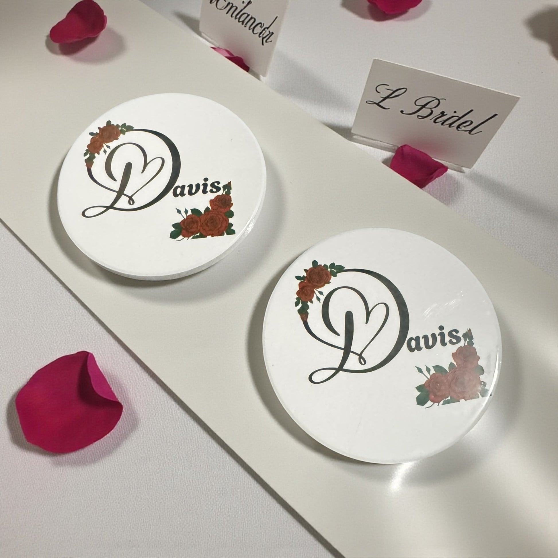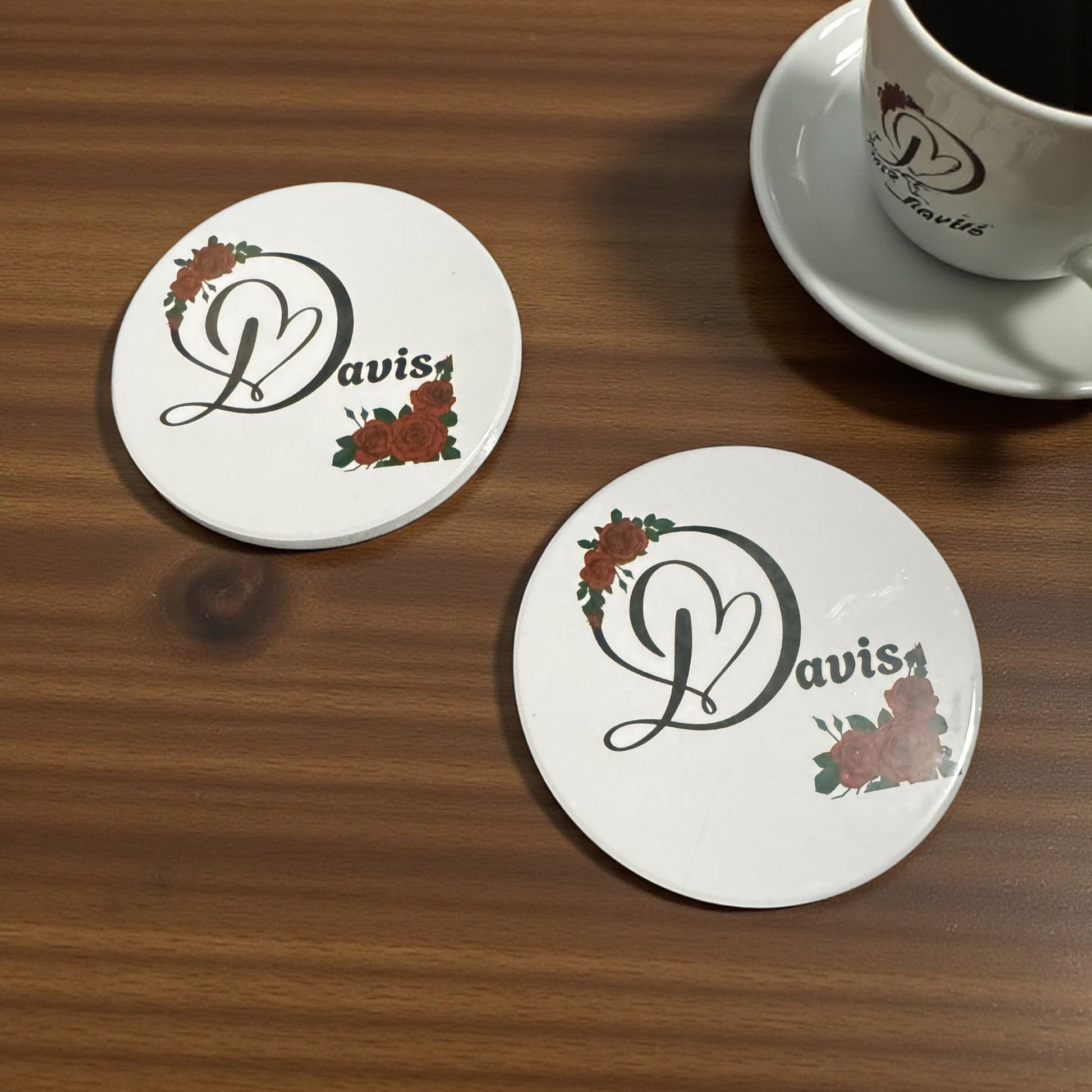 MONOGRAM NAME CUSTOM DRINK COASTER SET
